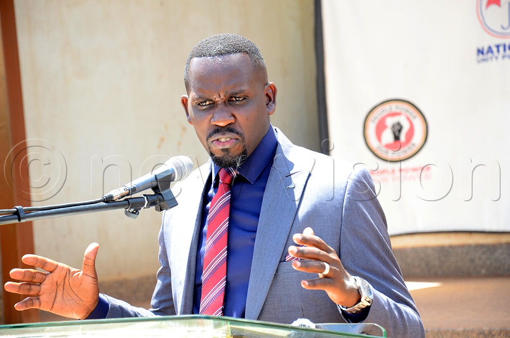 The NUP party Secretary General, David Lewis Rubongoya addressing the press conference at the NUP party headquarters in Makerere Kavule. (Photo by Isaac Nuwagaba)