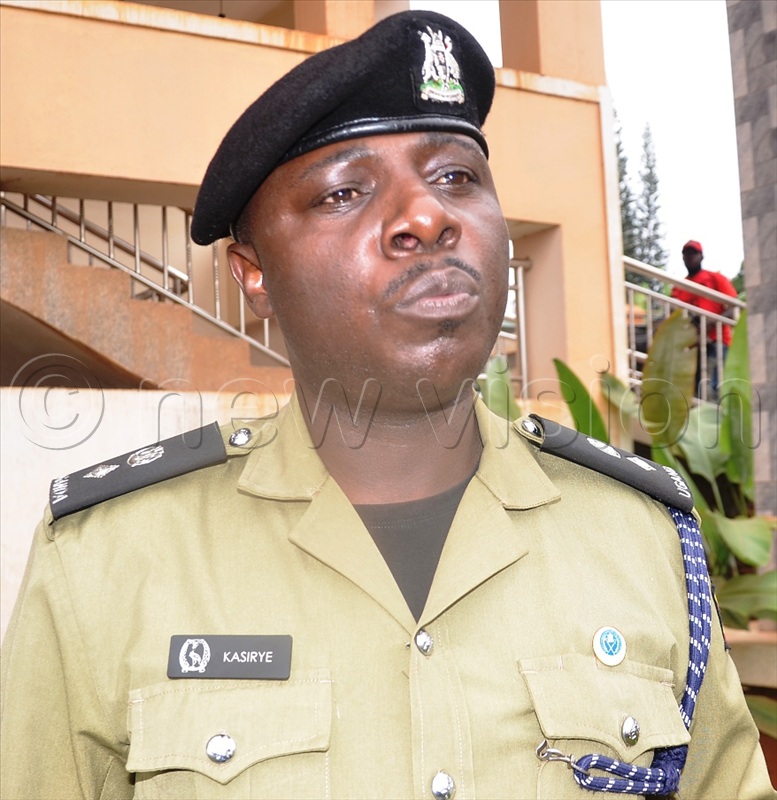 The Southern Regional Police Spokesperson, Twaha Kasirye, addressing journalists. (Photos by Dismus Buregyeya)