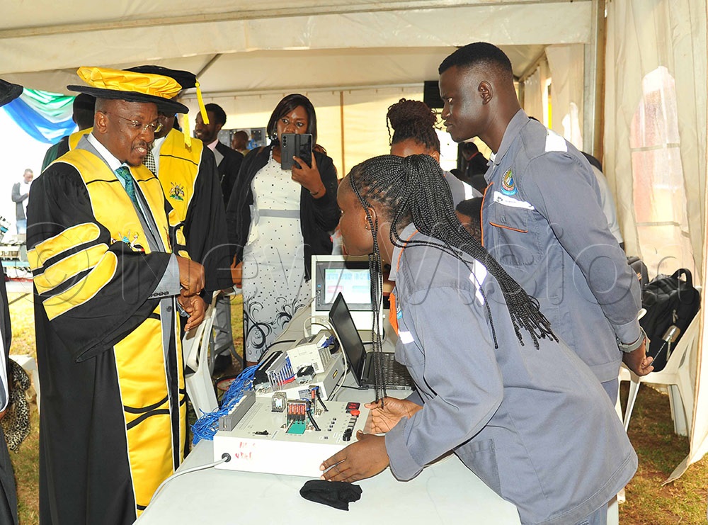 Kenneth Kaijura CEO National Housing and Construction Co. Uganda touring the students stalls during the Nakawa Vocational Training College 9th graduation ceremony. Photos by Godiver Asege