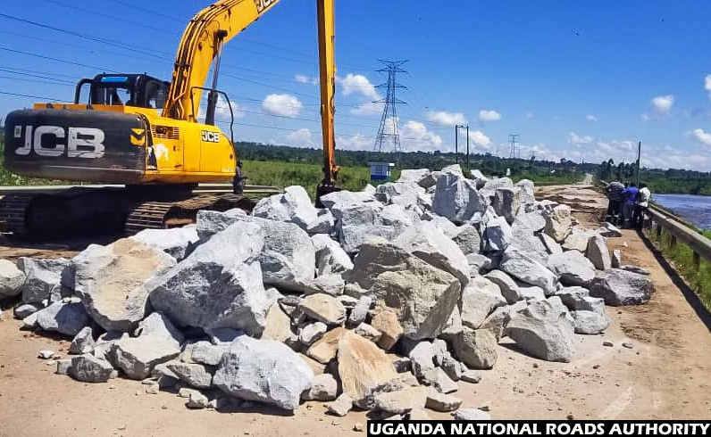 Last Sunday, UNRA says emergency restoration works at Katonga along the Kampala-Masaka Road had started. (Credit: UNRA)