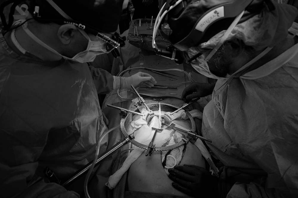 This July 14, 2023, image released by NYU Langone Health in New York, shows a team of surgeons transplanting a pig kidney. AFP