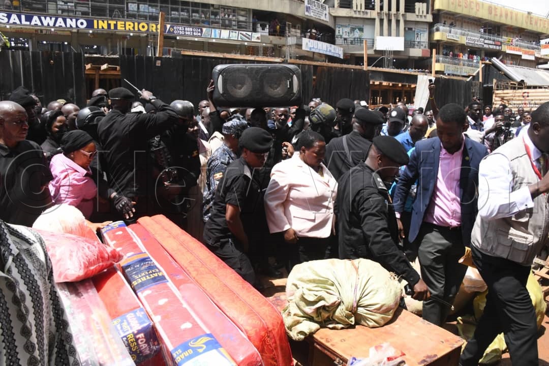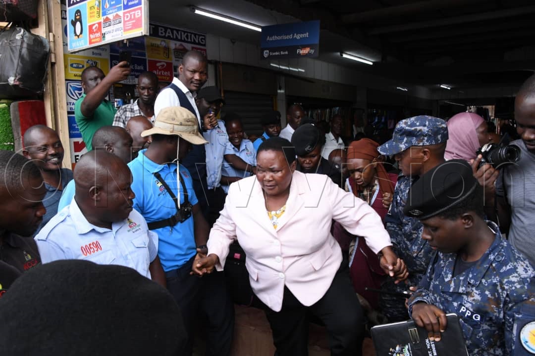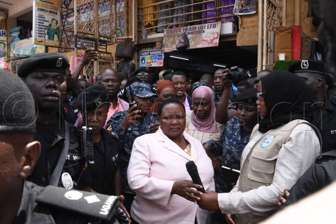 Prime Minister Robinah Nabbanja met Kampala City Council Authority (KCCA) leaders and business owners in Nakivubo as she assessed the extent of damage caused by the recent floods that hit downtown Kampala following heavy rains.