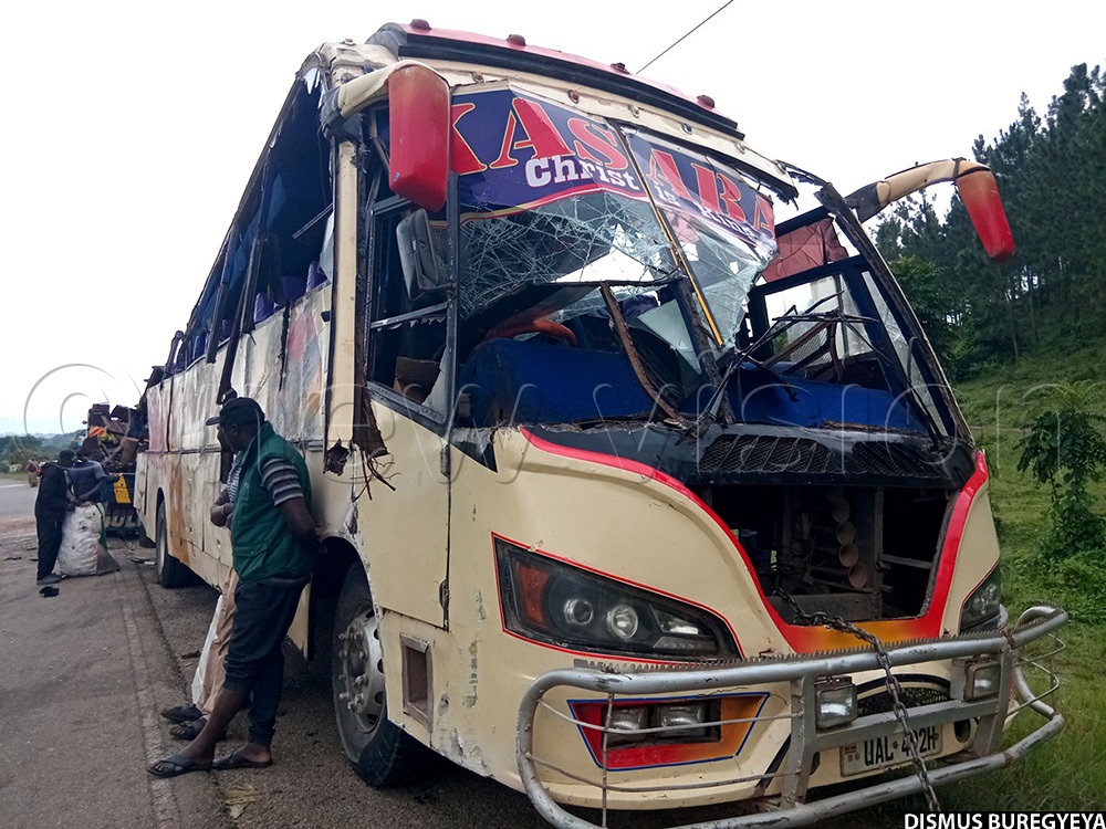 New Vision that after being hit, the bus swerved off the road to a crashing halt.