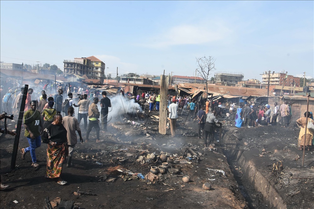 Twaha Mutebi, a 50-year-old trader, said the fire started from two old electric poles. He explained that around midnight flames began slowly on the poles before they fell onto one of the kiosks, which caught fire and spread rapidly to other parts of the market.