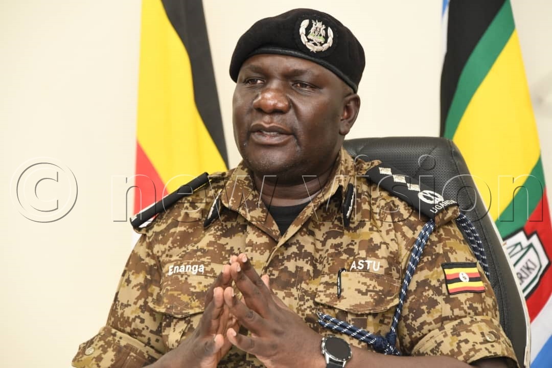 Fred Enanga, Police spokesperson addressing the media in Naguru. (Photo by Mpalanyi Ssentongo)