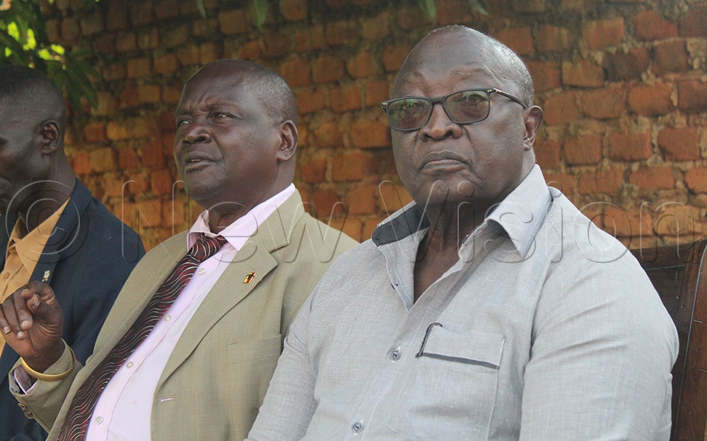 Rwot Richard Santo Apire the interim chairperson for the breakaway Acholi chief on the right with Rwot Justine Ocitti II of the Pagak clan in Amuru. Photo by Claude Omona