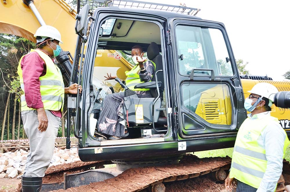 Aisha Sekindi, water state minister launches Kyenjojo-Katooke piped water supply and sanitation project as contractors look on at Katooke village in Kyenjojo district. (Credit: Juliet Kasirye)