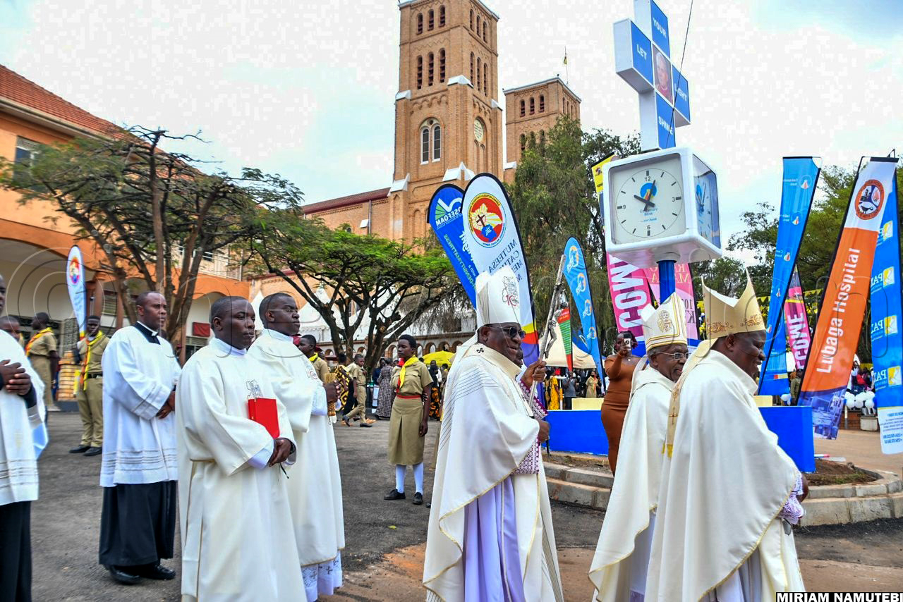 The Pontifical High Mass was being presided over by the Archbishop of Kampala, Paul Ssemogerere. Concelebrants included Archbishop Dr Augustine Kasujja, Bishop Servetus Jjumba of Masaka Diocese, Msgr. Dr Richard Kayondo from Lugazi Diocese, Monsignor George, the secretary to the Nunciature, and several other priests.