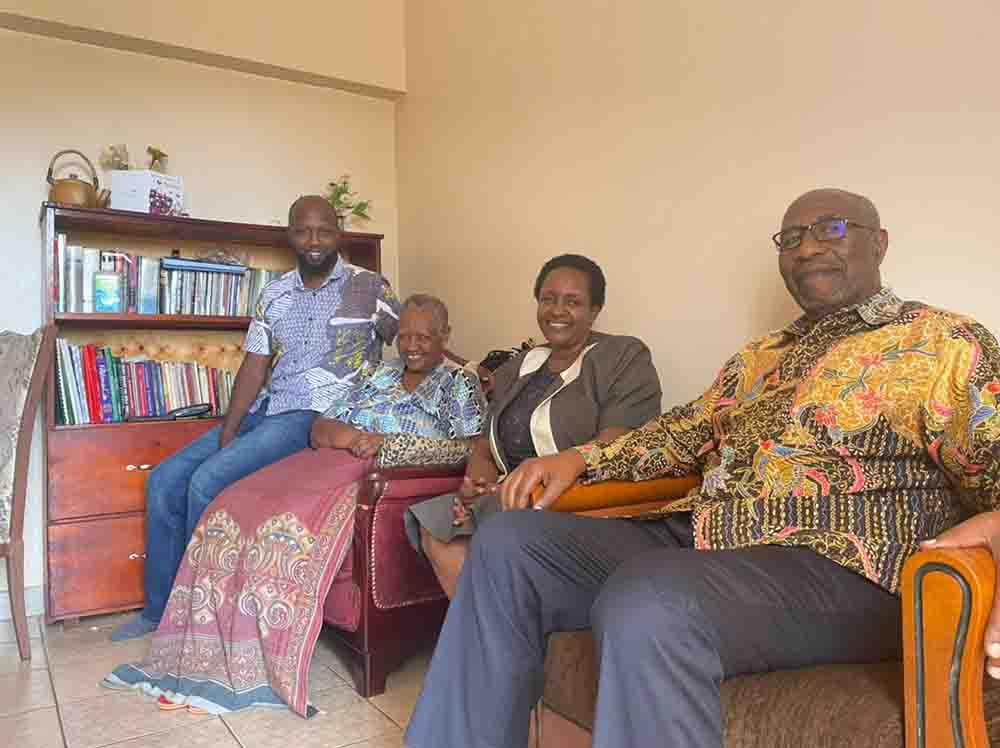Rugunda with the widow Esther Kalimuzo seated third from right and her family members.