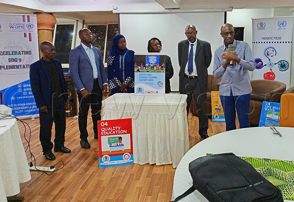 UNAU secretary general, Richard Tinkasiimire Baguma (extreme right), says cutting funding to programmes that create jobs for the youth can have negative ramifications for social order. (Photo by John Masaba)