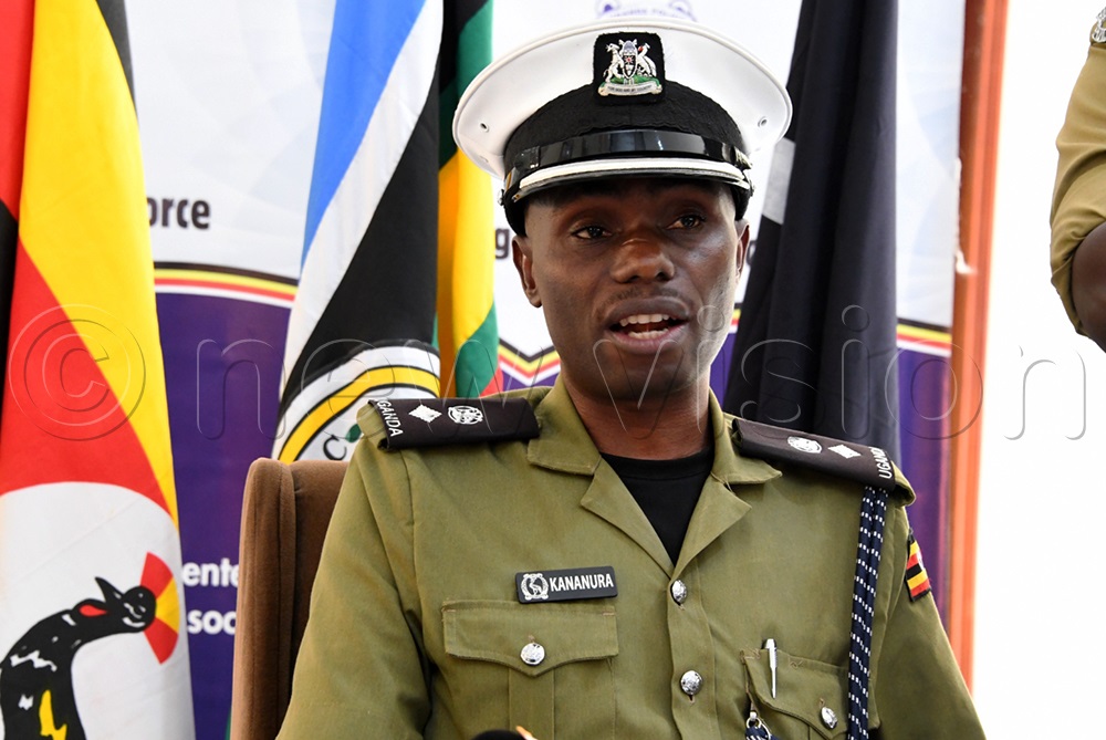 Michael Kananura, Spokesperson Directorate of Traffic and Road Safety addressing the media during the weekly joint security presser at Naguru Police Headquarters on Monday, August 19, 2024. (Photo by Mpalanyi Ssentongo)
