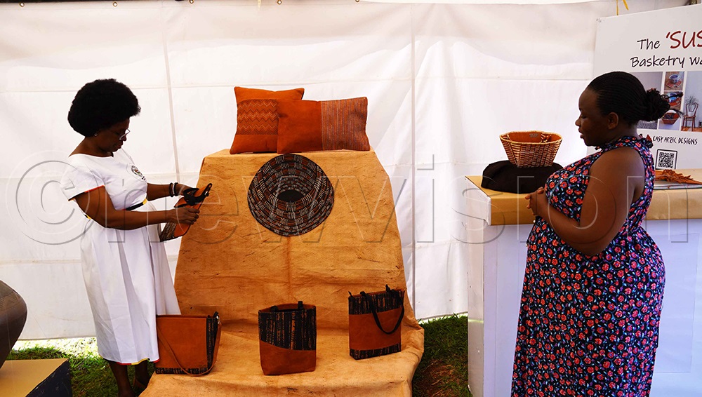 Minister of Science, Technology and Innovations Monica Musenero displaying clothes designed with African technology which needs improvement. (Photo by Isaac Nuwagaba)