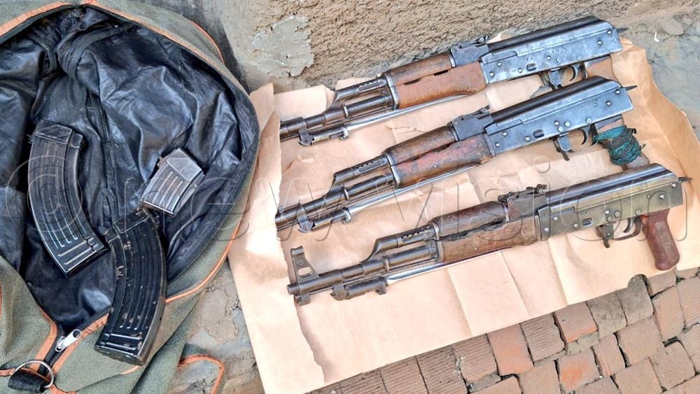 Some of the firearms recovered as security agencies arrested suspects in connection with a series of aggravated robberies within the Kampala metropolitan policing area.