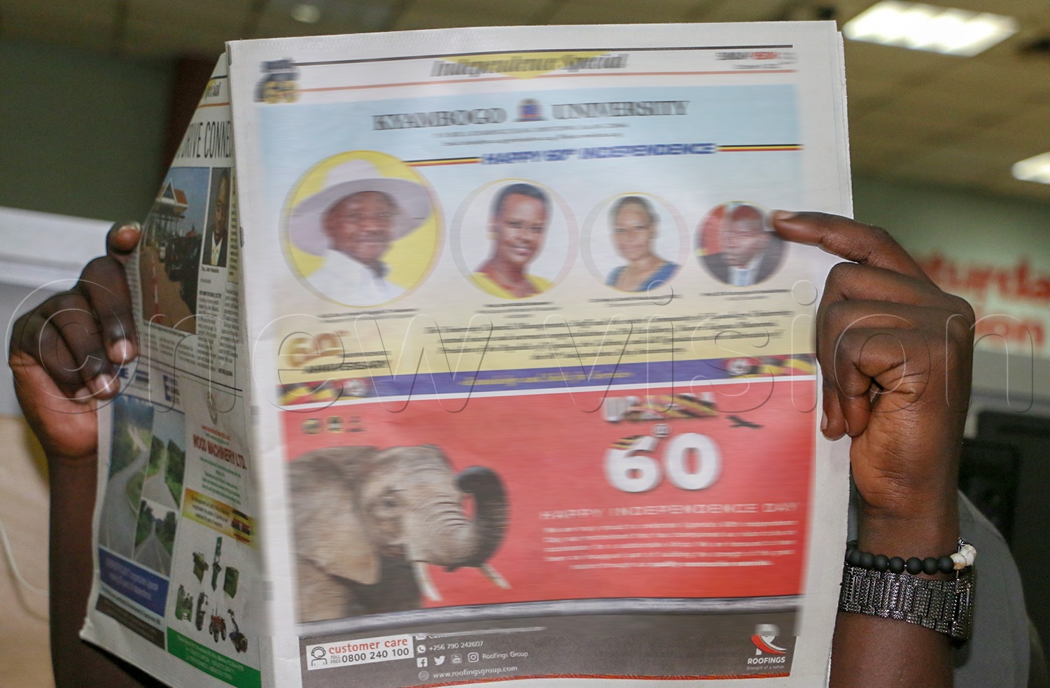 As Uganda celebrates 60 years of independence, Sunday Vision brings you a special supplement of 100 pages. (Photo by Alfred Ochwo)