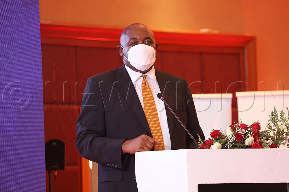 Dr Chris Baryomunsi the Minister of ICT and National Guidance speaking during the Huawei ICT Congress 2020 held at Sheraton Hotel Kampala