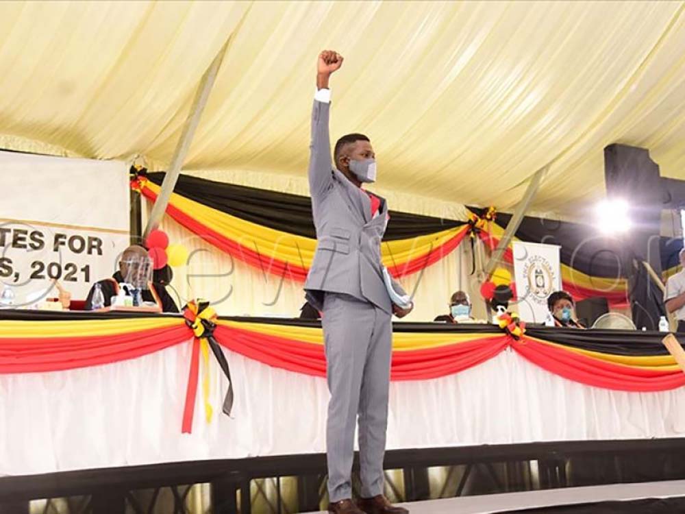 Robert Kyagulanyi Ssentamu, the leader of the National Unity Platform (NUP), stumbled while getting into his vehicle, causing the injury on his leg, according to the Police spokesperson Rusoke Kituuma. (New Vision/Files)