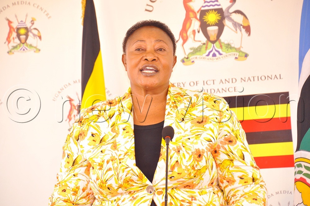 Milly Babalanda Minister of Presidency addressing journalists during a press conference at the Uganda Media Centre on January 23, 2026. (Photo by Nancy Nanyonga)