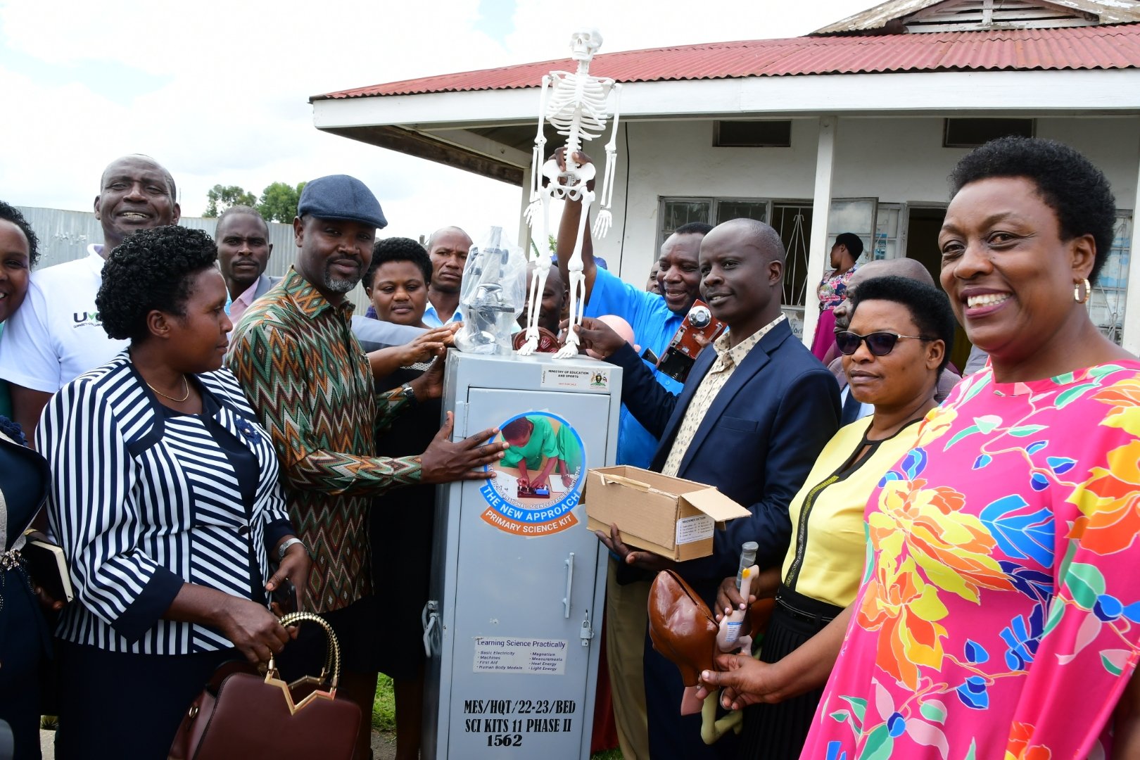 Deputy Speaker of Parliament, Thomas Tayebwa handing over of science kits to 20 primary schools in Mitooma district on Saturday/Courtesy photo