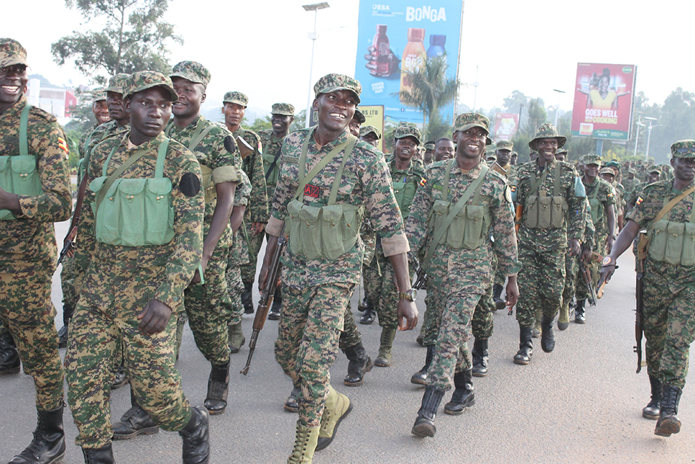 The excited UPDF officers during the 30-kilometre marching which was conducted in different parts of Mbarara City. It brought together officers and militants in a display of teamwork, discipline, and physical endurance.