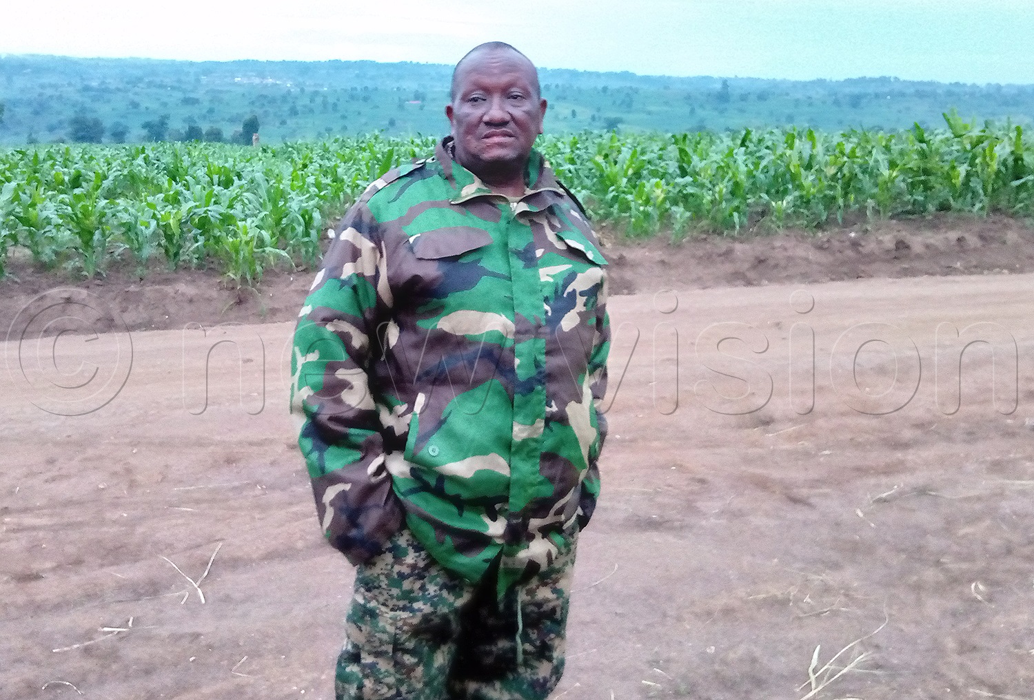 Brig. Gen. Felix Kulayigye during the tour of the army farm in Ngoma village, Kyangwali sub-county. Photo by Peter Abaanabasazi