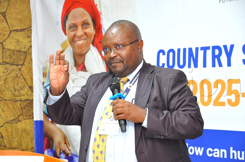 Richard Duuki from UNHCR addressing participants during the launch of 2025–2028 Strategy to Strengthen Refugee Resilience. (Photo by Nancy Nanyonga)