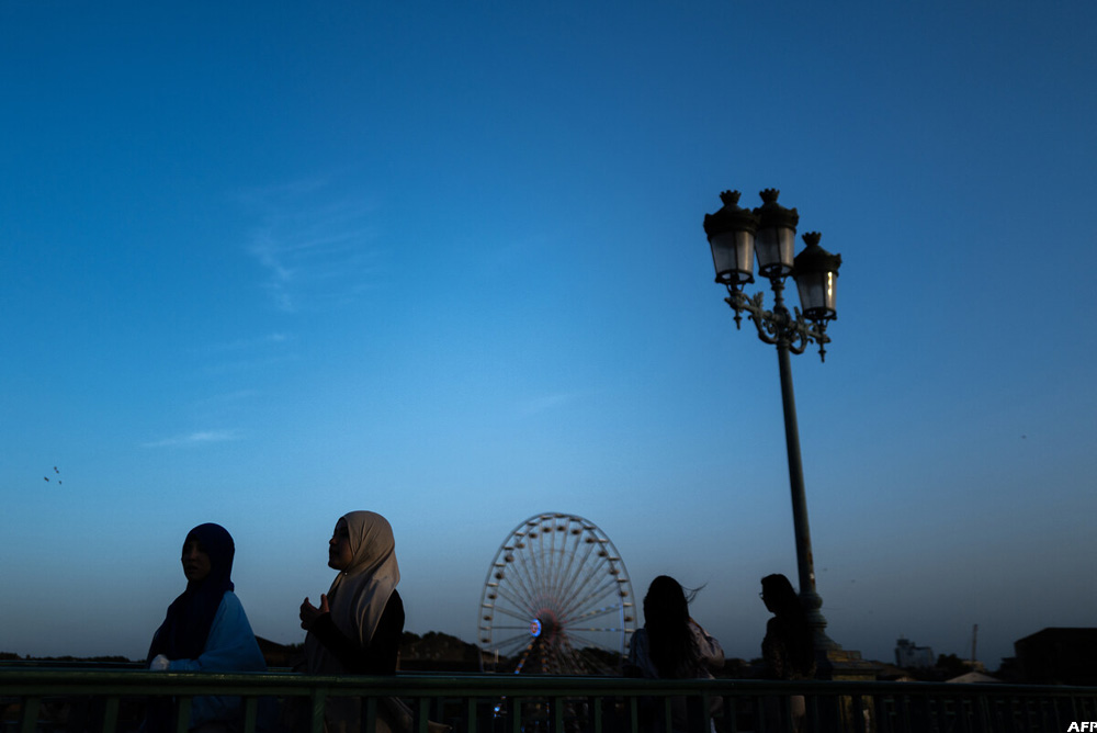 Women wearing an abaya walk on a bridge in the southwestern city of Toulouse in France on September 6, 2023. (AFP)