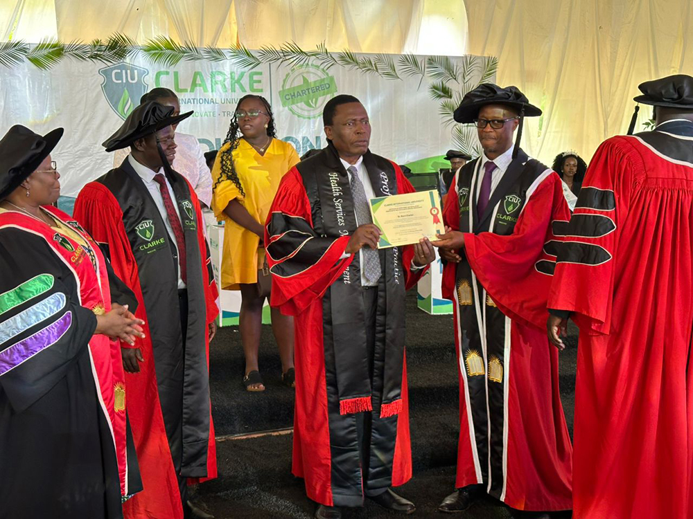 Dr Charles Olaro, the Director General of Health Services at Uganda's health ministry, has been installed as the first Professor of Practice in Health Services Management at Clarke International University.