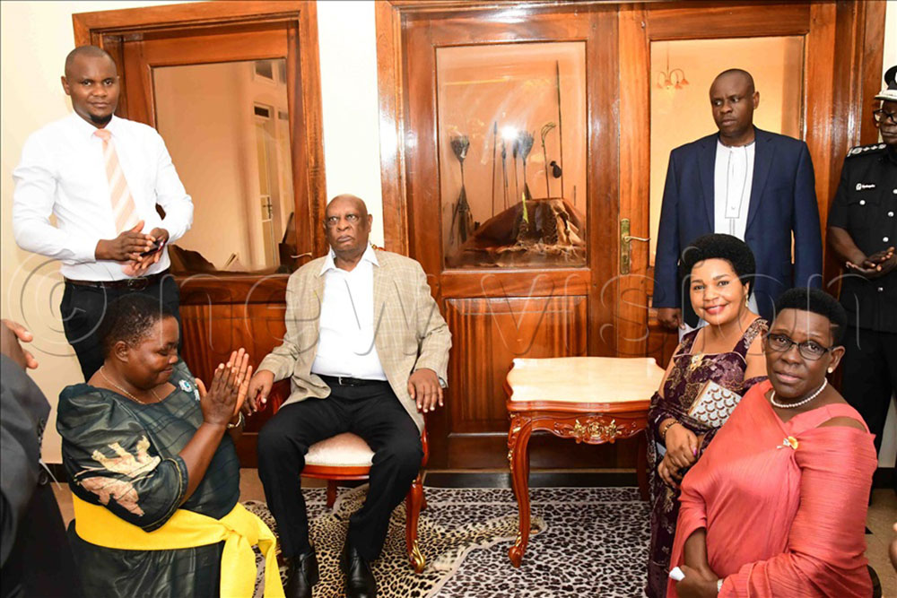 The Prime Minister, Robinah Nabbanja (L), greets Omukama of Bunyoro-Kitara kingdom, Rukirabasaija Agutamba Solomon Gafabusa Iguru I. (Credit: Eddie Ssejjoba)