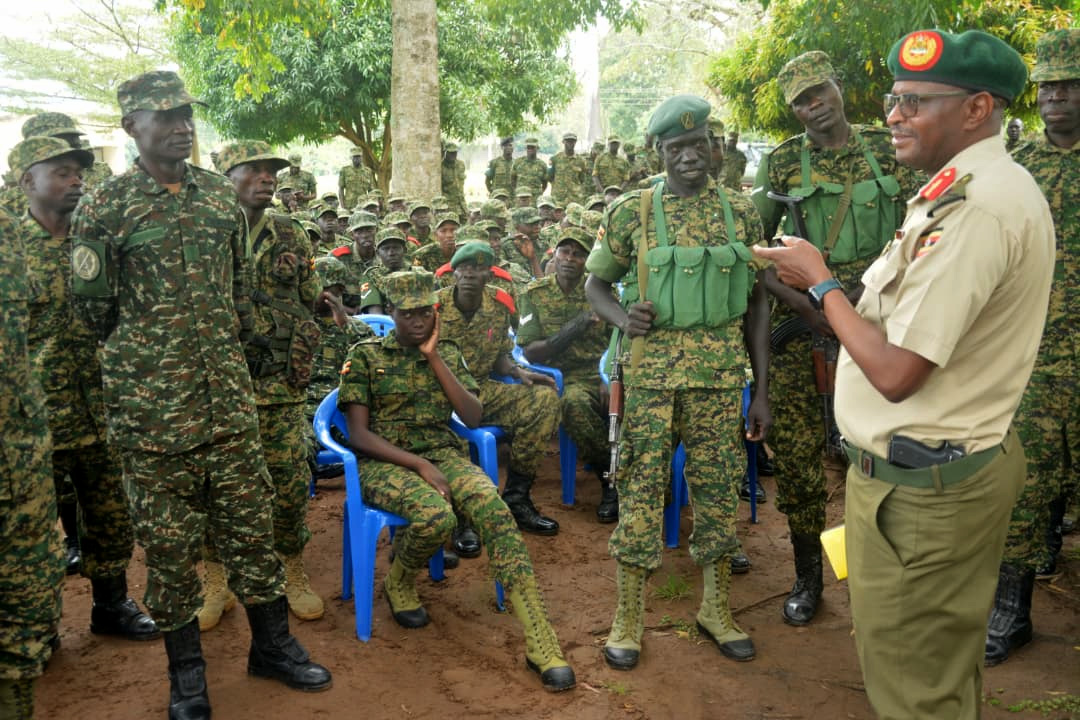 The Uganda Peoples’ Defence Forces (UPDF) 4th Infantry Division commander, Major General Felix Busizoori, lecturing the soldiers. (Courtesy photo)