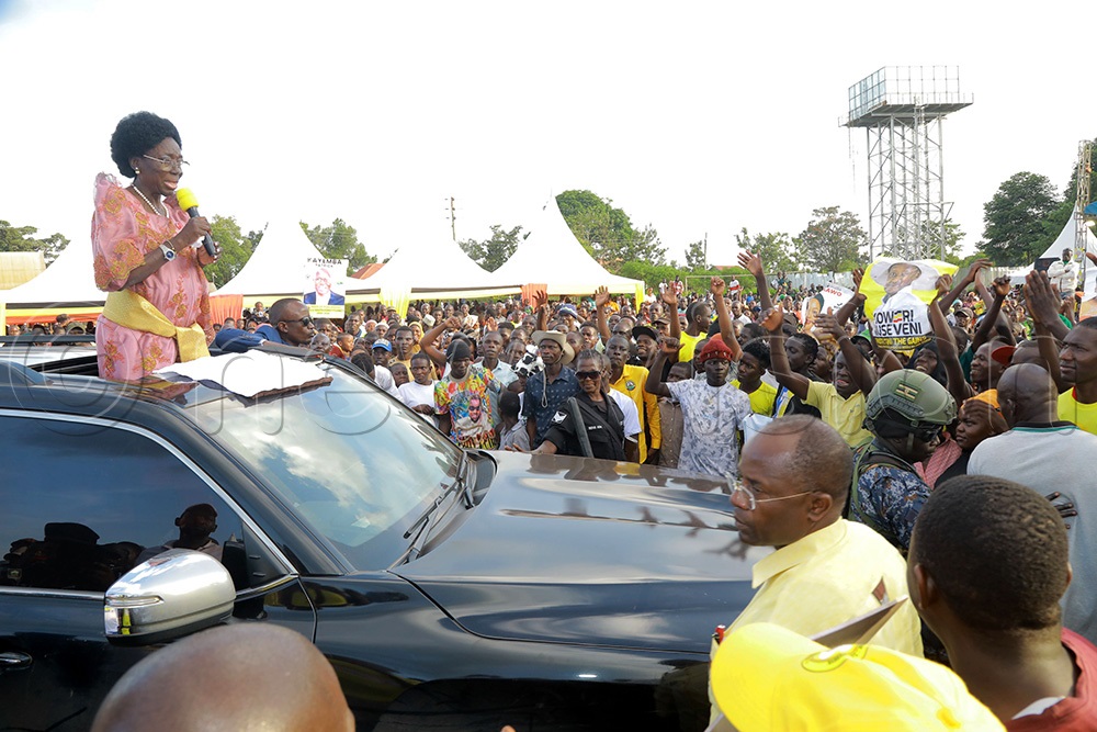 "Will request the President to increase Emyooga and PDM funds," she assured the crowd. She revealed that shillings 500 million had already been sent to each constituency under Emyooga.