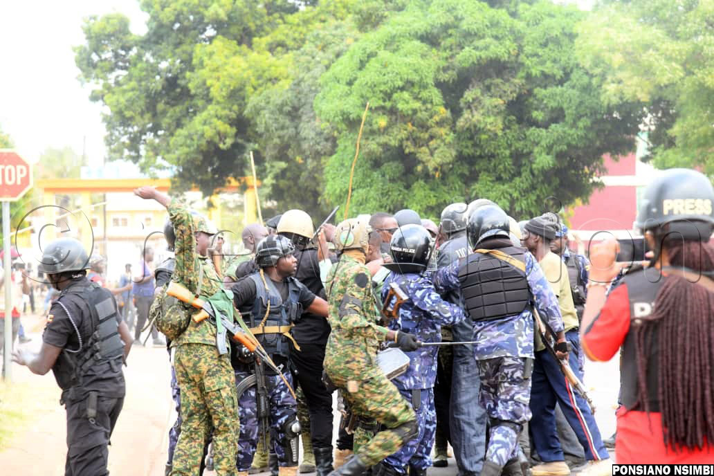 The clashes occurred after the army and Police had blocked all access roads leading to Awere Grounds in Gulu city, where Kyagulanyi had been scheduled to hold a campaign rally.