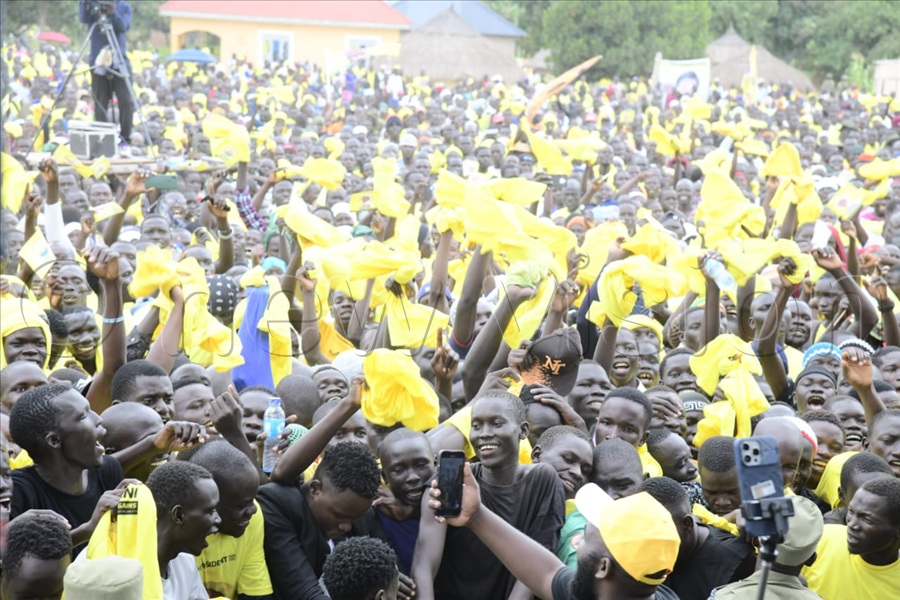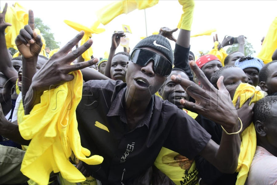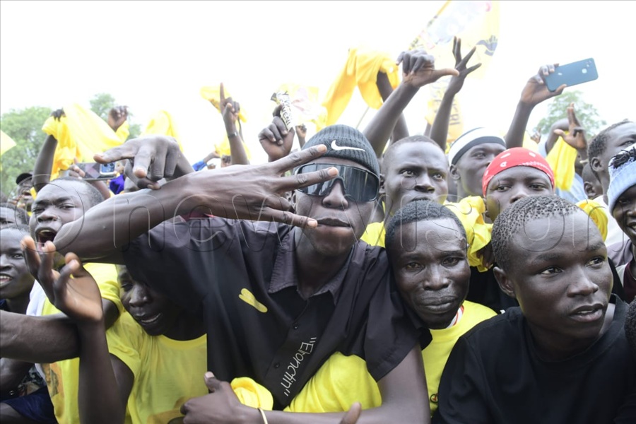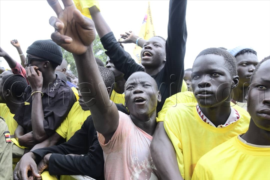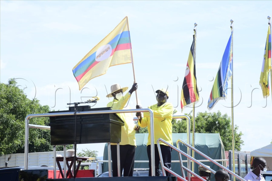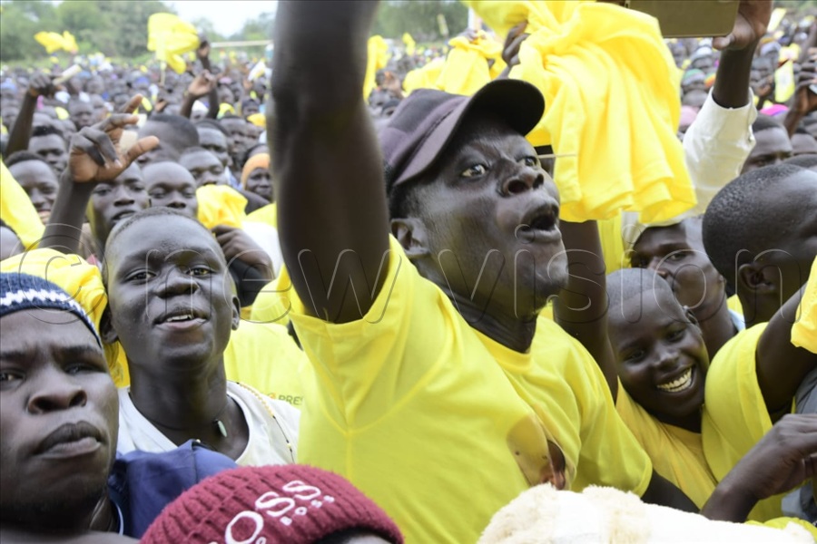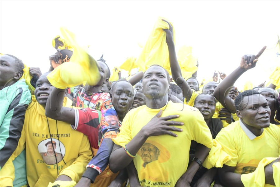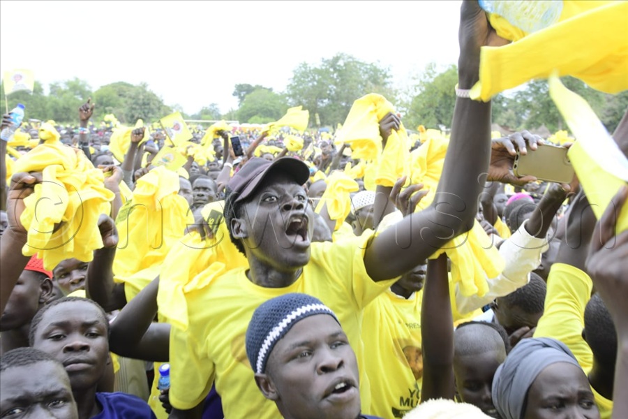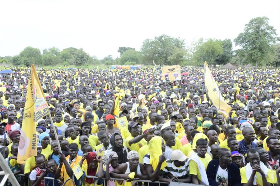 On Friday, October 17, Museveni arrived at Lionga Grounds, Obongi, standing through a car sunroof, flashing a thumbs-up sign and smiling at thousands of his supporters who braved the scorching sun to listen to him.