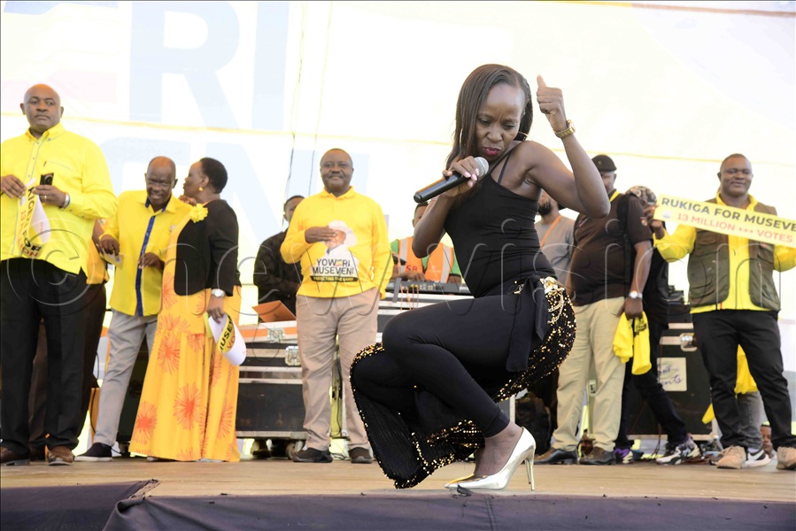 Artistes, including Weasel, Catherine Kusasira, Phinah Mugerwa aka Masanyalaze, Gravity Omutujju, and Ronald Mayinja, among others, entertained NRM supporters. (All Photos by Eddie Ssejjoba)