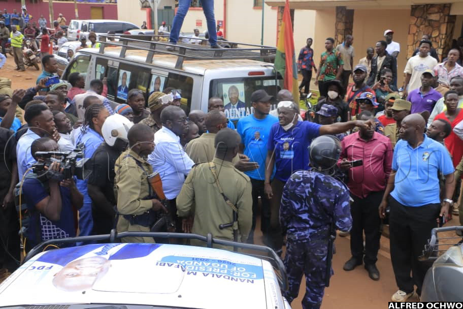 On his final day of campaigns in Busoga sub-region, Forum for Democratic Change (FDC) presidential flagbearer Nathan Nandala Mafabi on Friday (October 3) clashed with security officers in Jinja city over passage through the tight main street.