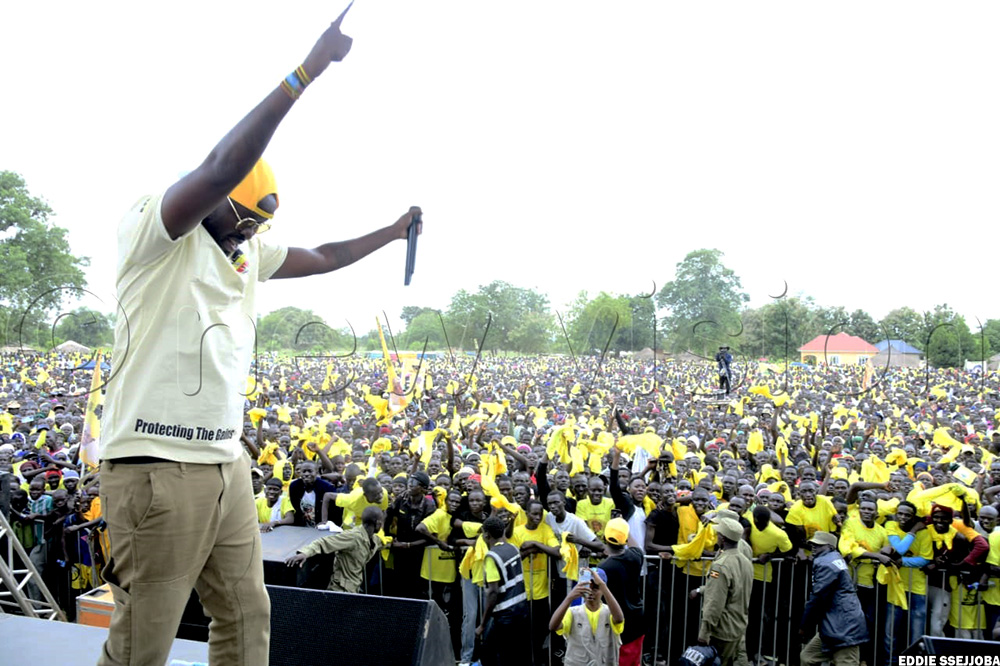 As they waited for him, they were entertained by popular musician Eddy Kenzo. His hit songs kept the supporters