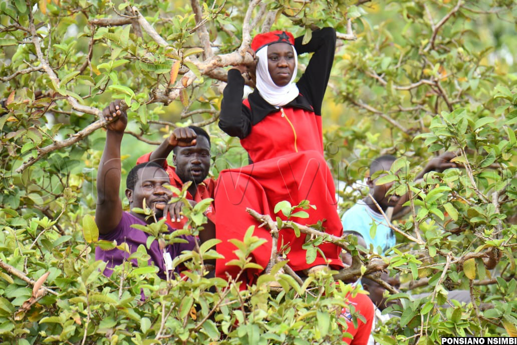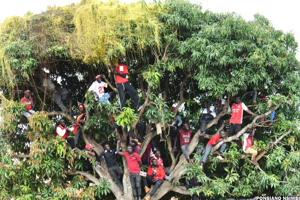 Eager to hear Kyagulanyi speak, or even just catch a glimpse of him, some supporters improvised, climbing nearby trees to watch and listen as Bobi Wine addressed the crowd.
