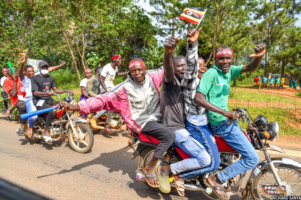 So fast that time itself seemed to slow down — NUP supporters rode on motorcycles, racing alongside Kyagulanyi’s convoy to keep pace with his campaign trail.