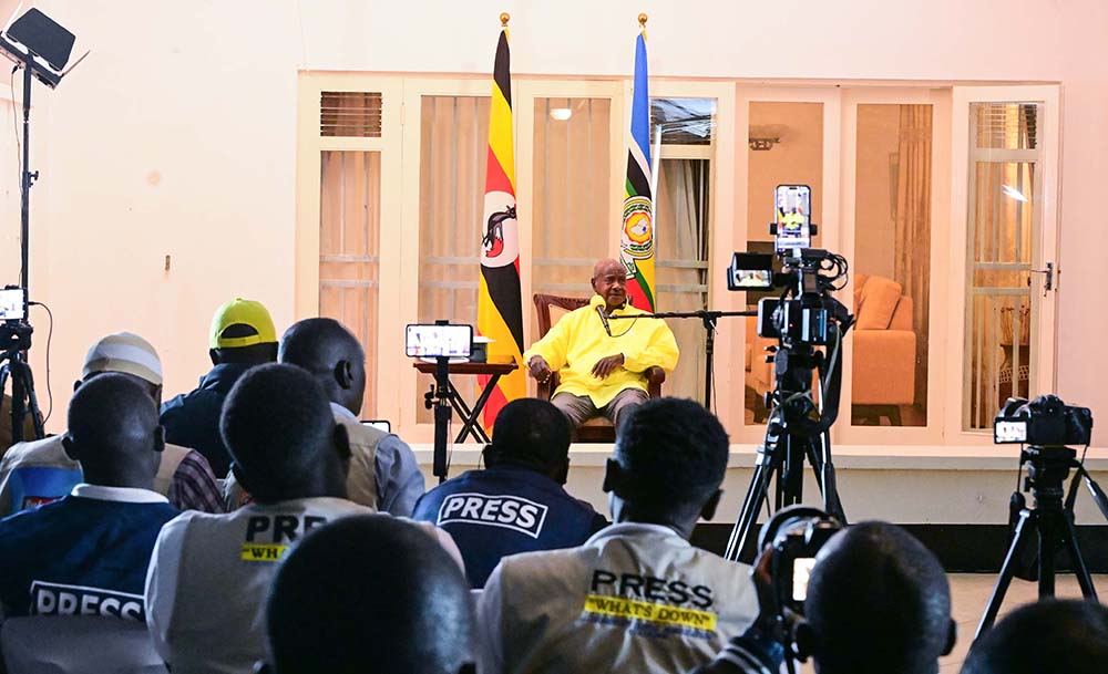 During his interaction with the journalists, Museveni also warned that the Government will crush any Opposition group that dares to disturb the existing peace in Uganda. (PPU Photos)