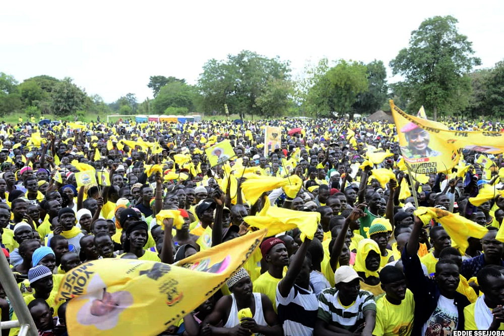 Celebrated singer Eddy Kenzo whipped a mammoth crowd of President Yoweri Museveni's supporters into a frenzy with thrilling performances at Lionga Boma Grounds in Obongi town council, Obongi district, on Friday (October 17).