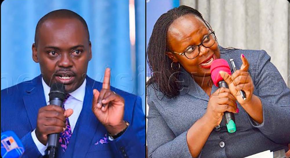 Makindye West MP Allan Ssewanyana who was arrested over Masaka murders lost the NUP party card to KCCA speaker Zahrah Luyilika addressing the media after nominations recently. (Credit: Isaac Nuwagaba)