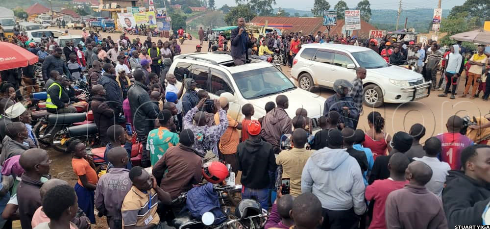 Muntu later held a rally at Mateete town amid a drizzle before heading to Lwebitakuli, still in the same district