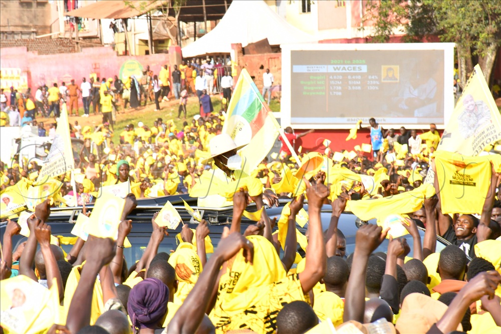 To guide his supporters on opportunities, Museveni asked his press team at the venue of the rally to play footage of the industrial parks and the hydropower projects that are in Uganda. The videos were shown on the huge screens erected at the grounds.