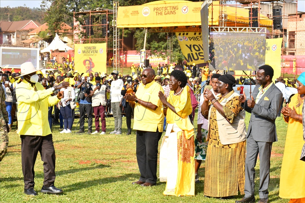 Giving tips to his supporters on how to respond to rival camps, the NRM chairman and Presidential candidate, said, “when they go back to their villages after the rally and they ask you to give reasons why you support NRM, tell them that there are seven bricks NRM has put on the house of Uganda.”