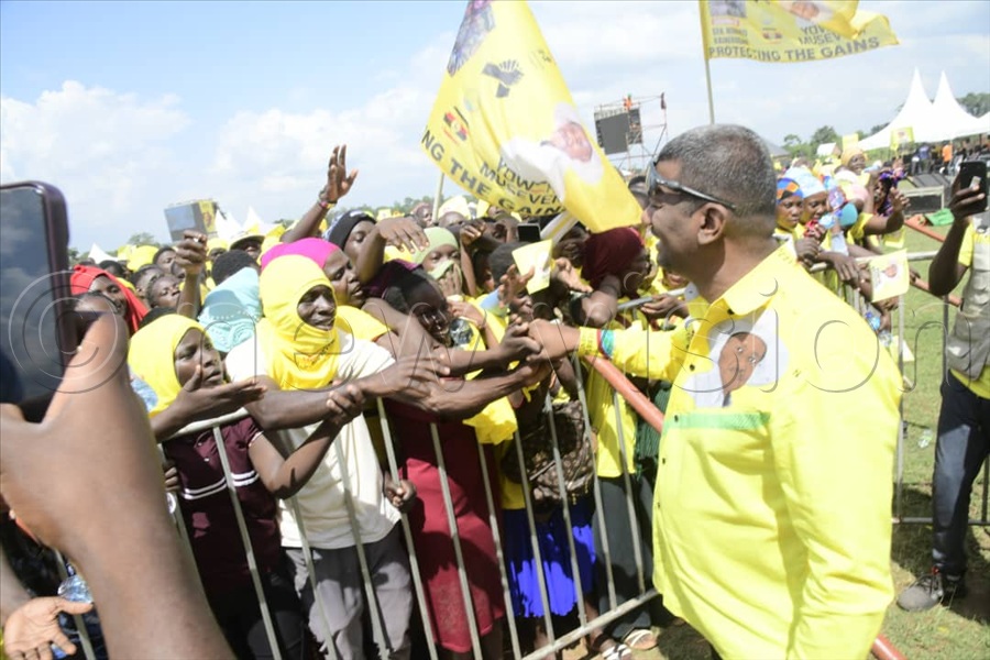 Kampala Central Mayor, Salim Uhuru interacting with NRM supporters gathered at Kyabazinga Grounds in Bugweri district.