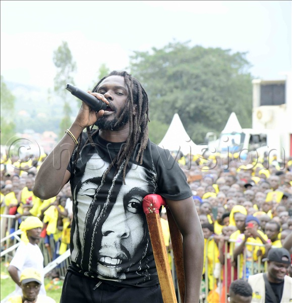 An NRM supporter captures President Museveni as he arrived with the First Lady for their mega rally at Kyamate Primary School playground in Ntungamo district.