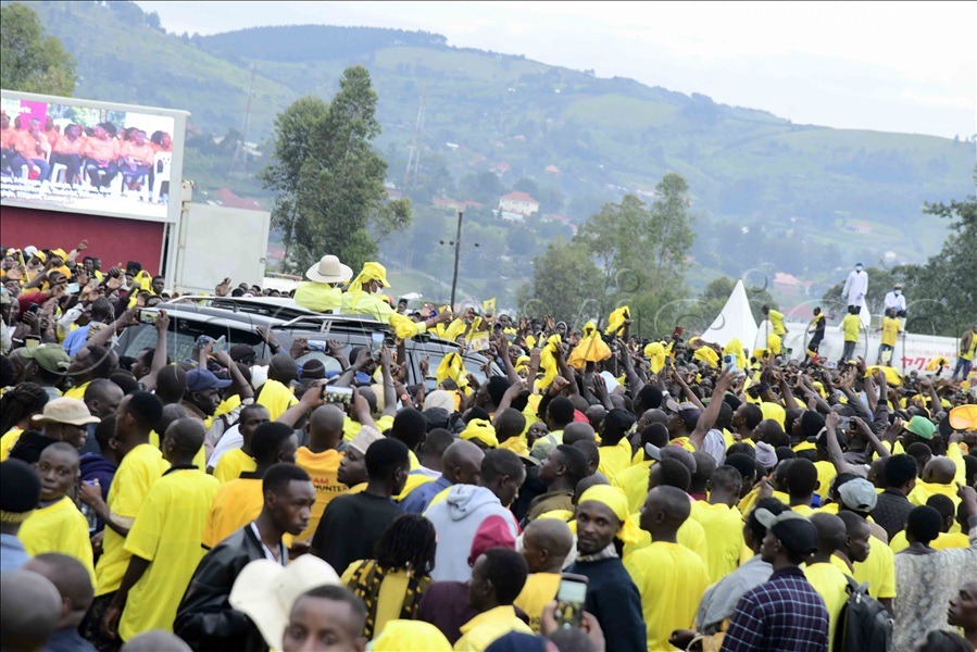 At Kyamate Primary School playground, Museveni appealed to the NRM supporters to mobilise all eligible voters to turn out in big numbers on the polling day and vote for President Museveni and the NRM flag bearers. Here is a picture highlight as captured by Multimedia journalist Eddie Ssejjoba;