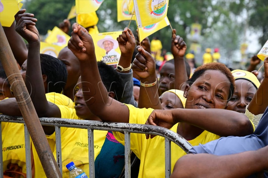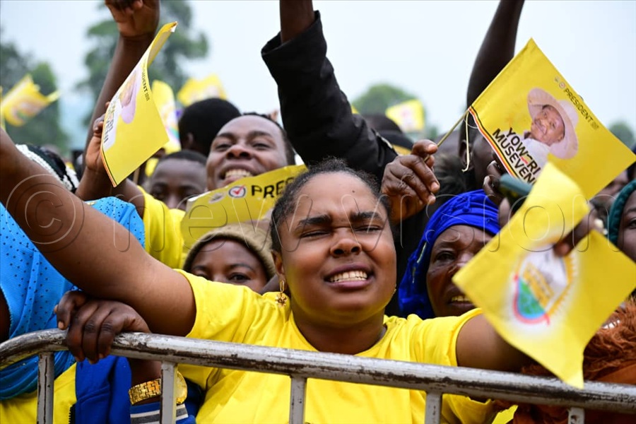 Excited NRM supporters in Lwengo at Mbirizi Seed Secondary School playground, where President Yoweri Museveni has held his first rally. (All Photos by Eddie Ssejjoba)