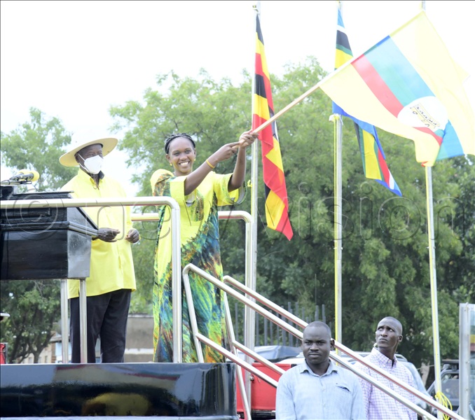 Accompanied by the First Lady and the Minister of Education and Sports, Janet Museveni, the president, arrived at Namrwodo Primary School playground in Nebbi town and was given a colourful and lively reception. (All Photos by Eddie Ssejjoba)