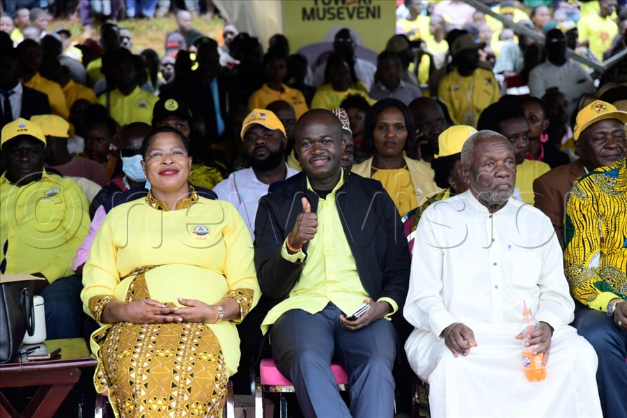 Accompanied by the First Lady, Mrs Janet Museveni, the President was received at Bukalasa Agriculture College in Wobulenzi, Luwero district by big shots in the government, including the first national deputy NRM chairman, Al Hajji Moses Kigongo, speaker of parliament Annet Anita Among, NRM Secretary General Richard Todwong, among others.