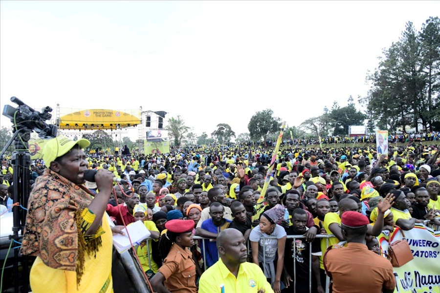 LUWERO - The heavy downpour a few minutes to the arrival of the National Resistance Movement candidate, Gen. Yoweri Museveni spoiled the mood but soon after, the already fired crowd regathered and cheered their candidate when he turned up to launch his campaign trail in Luwero district, bringing back the bush war memories when he launched the bush war campaign in the same district almost 45 years ago.